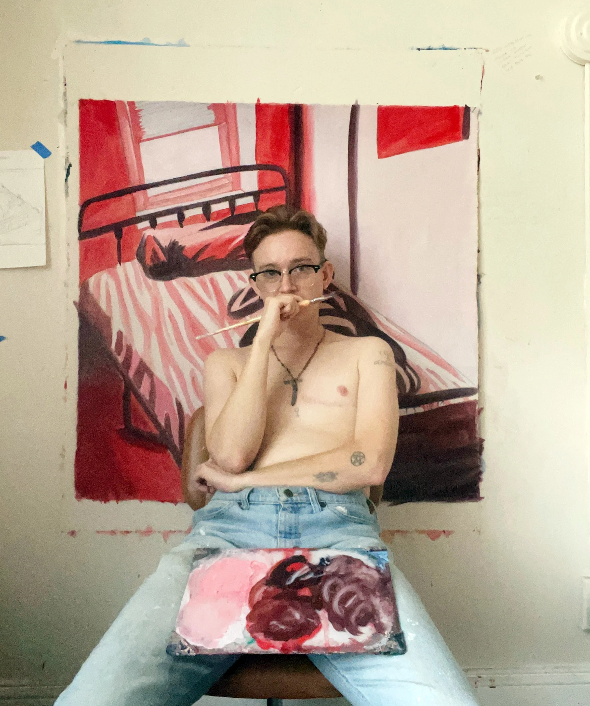 Jonah Brock originally hails from central Illinois. In 2021 he received a B.A. in Visual Art and Art History from the University of Colorado at Colorado Springs. His work has been exhibited in various locations, such as the Museum of Art Fort Collins in Fort Collins, CO, SVA Residencies Online Galleries, and Night Owl Gallery in Baltimore, MD. He has attended residencies at the School of Visual Arts New York, Rockland Residency in Belfair, WA, and The Machine Shop in Colorado Springs, CO. In addition to visual art, he is also a writer, and in 2019 performed spoken word poetry at TEDxColorado Springs: Frontiers. He is currently based in Baltimore, MD, where he also curates exhibitions at home and in guest locations.